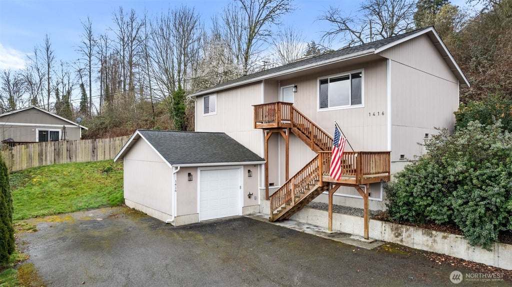 Step into this beautifully updated 3-bedroom, 2-bath home with partial views of Mt. Rainier, the Port of Tacoma and the Cascades! Renovations include a sleek new kitchen with quartz countertops, fresh flooring, and upgraded bathrooms. The primary suite offers a walk-in closet and a private ensuite bath. Ideally situated near I-5 and Tacoma Dome Station, this location provides seamless access to downtown Tacoma, shopping, and the waterfront. Conveniently positioned at the end of the street and backing to a greenbelt, this home delivers both privacy and accessibility with fantastic territorial views. Enjoy gatherings in the fenced backyard—perfect for summer BBQs!