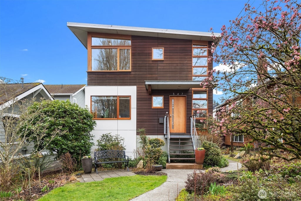 One of the original 3-Star Built-Green homes in Seattle, this much-published architectural stunner wowed the community in 2005 as a case study in sustainable building. Two fastidious owners & many thoughtful improvements along the way present a home that is as compelling today as it was 20 years ago. Indeed, better for the time. White quartz & new custom upper cabinets updated the kitchen vibe, with sustainable hardwoods on the main and warm cork in the lower level adding further refinement. Raised veggie beds & large patio in the enclosed/sunny backyard, with one-car detached garage off alley. Stunning landscaping front-to-back. In-floor radiant heat on all 3 levels w/recently-added Mini-Splits on main & upper floors delivering A/C.