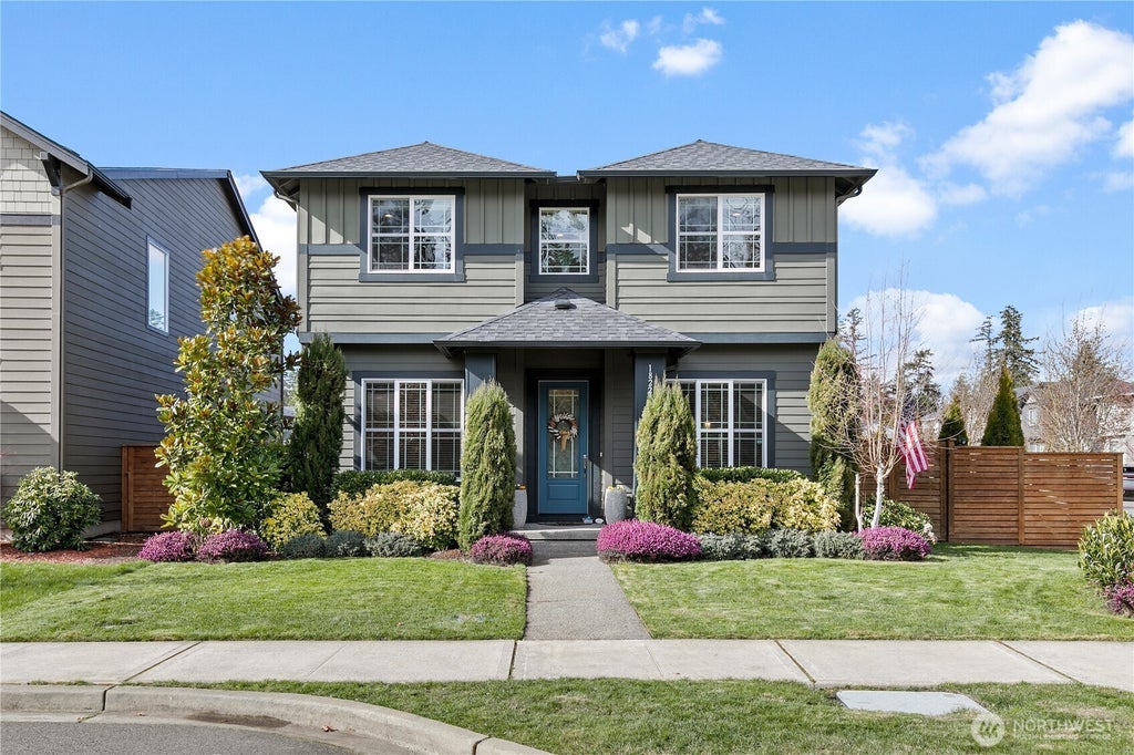 Welcome to this stunning 4-bed, 2.5-bath home on a corner lot in Tehaleh! This prior Azure model home features the popular Alki Crest plan, complete w/ $88k in upgrades. The open floorplan boasts a gorgeous kitchen w/ an island & SS appliances, flowing seamlessly into the living room w/ built-ins around the fireplace. Main floor includes an office/den (option as 5th BR) & powder bath. Upstairs, you'll find a full bath, laundry room, & 4 bedrooms including a primary suite w/ a 5-pc en-suite & WIC. Enjoy the ample sized fully fenced yard complete w/ an uncovered & covered patio space w/ an outdoor fireplace. Plus, an attached 2-car tandem garage. Just blocks from the dog park, Discovery Park, & Tehaleh Heights School! All appliances included.