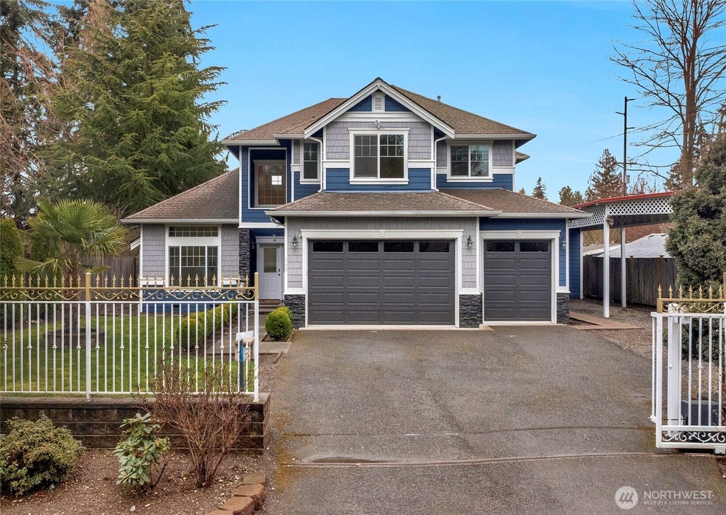 Experience a magnificent beautifully updated gated estate home on an oversized yard lot in Shoreline. Discover so many unparalleled modern luxury enhancements as it shows like brand new inside. Dramatic entry with soaring high ceilings. Stunning tile main floor bathroom with shower. Oversized windows throughout bathe the interiors with abundant natural light.Primary bedroom suite with gorgeous marble 5 piece bath. Upstairs utility room. Gourmet chef's kitchen with granite slab counters & tile back splash. You will the love the grandeur of the expansive fenced backyard with room to play and entertain. Oversized finished 3 car garage plus a big carport. Central AC. Just a few steps from the light rail station, parks and great schools.