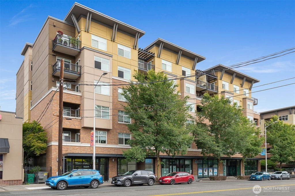Junior one bedroom/studio in the heart of Ballard! An open floor plan and large windows with abundant natural light and a spacious balcony make an attractive and welcoming place to land. The unit features a large full bathroom with tile floors, new carpet and paint & in-unit washer/dryer. Unit includes a secure parking spot for easy entry. Building amenities include an on-site concierge, secure package/mail delivery, an outdoor hot tub, gym, sauna, clubhouse with kitchen. BBQs available by the hot tub. Pet-friendly, no rental cap. Super convenient location with many nearby amenities including transit, shops, restaurants, farmer's market, parks (Golden Gardens), and all Ballard has to offer!