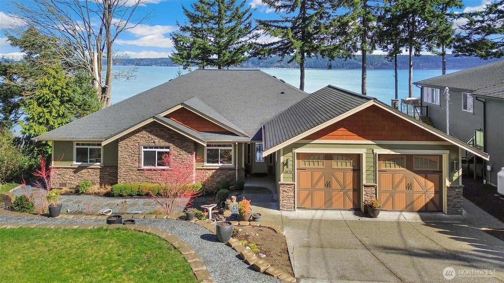 Awe Inspiring views of Port Susan, Mt Baker & the Cascade Mountains greet you when you enter this magnificent custom-built home featuring 2 bedrooms, bonus room, office, 2.5 baths & 2,528 sq feet of single-floor luxury living. Adventure awaits from the private beach access; kayak, crab & explore! Relax & take in the views from the large deck, enjoy entertaining in the gourmet kitchen complete w/ Wolf dbl ovens & range, & cozy up to one of the 2 exquisite fireplaces. Wake up to the incredible views from the primary bedroom complete w/ fireplace, full ensuite & access to the deck. Attention to detail inside & out is evident from the vaulted ceilings to the beautiful landscaping. Camano Island requires no ferry & is close to all amenities.