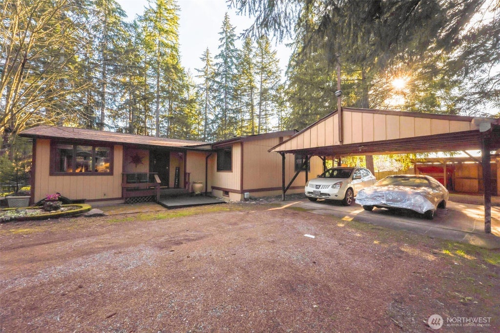 Welcome to this charming 2 bedroom/2 bath plus bonus room on private half acre lot. Featuring a spacious kitchen and an open living concept. Cozy wood fireplace in dining room opens to living/family room with large pictures windows, views to back and front spacious yard with mature landscaping and lots of birds/wildlife. Enjoy morning coffee or summer barbecues on large covered deck. Apple & Cherry fruit trees plus 2 room fenced chicken coop. Plenty of space for all your animals. Located on a quiet dead-end street. Additional features include a carport and shop for tools/toys. Privacy and a peaceful retreat. The expansive lot provides plenty of space for outdoor activities. Easy access to highways, JBLM, schools and shopping.
