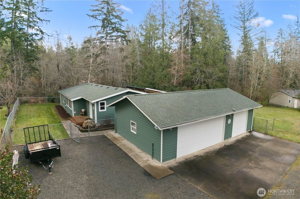 The total property! Well worth the drive to show this impeccably maintained modular home with detached 3-car garage/shop in recreational Timberlakes. Terrific choice as a main home closer to nature, low-maintenance 2nd home, or versatile retirement property without sacrificing space or important features. Enjoy a fully-fenced double lot, covered deck, divided shop for multiple cars & workspace, fire pit area, & RV/extra parking. Inside you'll find a functional open floor plan, delightful kitchen with solid wood cabinetry, coordinated granite surfaces, a primary suite with tiled bathroom, extra closets, & laundry room with W/D included. Updated roof, floor coverings, electrical, & plumbing. Everything to see here and nothing to do but enjoy!
