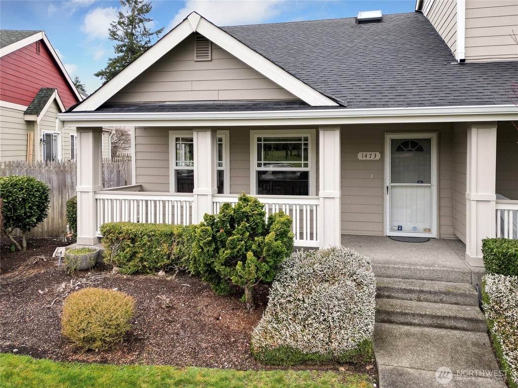Welcome to this charming 2bed/2bath, condo in popular Bay Colony complex, offering comfortable, single-level living in a premier location. Enjoy coffee on your front porch with expansive views of Clocktower Park. Steps away from annual events like the Farmers Market, Music/movies in the Park and 4th of July celebration. Large playground too! Plus close proximity to downtown DuPont. This home features a spacious open living space with vaulted ceilings and cozy gas fireplace. Updated stainless appliances complement the bamboo flooring and hard surface countertops. Private side patio for outside access that is fully fenced. 1-car attached garage with 1 space behind garage. Tankless water heater. Newer roof installed. Come visit today!