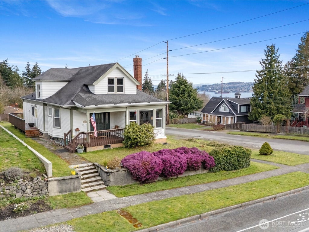 Welcome to this Outstanding 3-level Home with peek-a-boo View of Commencement Bay. You’ll love this corner lot huge home w/ 2245 finished sqft +1304 unfinished sq ft Basement - so much potential! Step inside to Hardwood floors, large Living Room w/ high ceilings +gas fireplace, Dining Room w/ French doors to huge wrap-around Deck w/ view. Big & bright open Kitchen w/ Hardwood floors, lots of cabinets & counters, Dining Nook & door to Back Deck & Backyard. Main floor Primary Bedroom w/ full Bath adjacent. 2nd Bedroom/Bonus on main floor +2 Bedrooms, ¾ Bath & small Den/Office upstairs. 1-car Garage, Backyard w/ garden beds. Near Puget Park, Proctor & Old Town. Bring your vision & updating ideas to make this a true GEM. Welcome Home & HURRY!