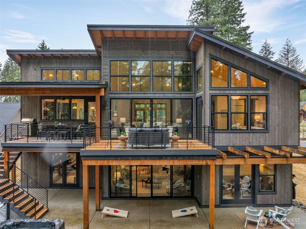 A stunning, custom, modern mountain home, full of warm light, special upgrades & surprises, in the coveted River Ridge at Suncadia. A short bike ride or walk to Nelson Farm & owners pool, this home offers an abundance of beautiful, comfortable living spaces including a main floor primary suite w/soaring ceilings, a secret bunk room w/ensuite & patio access, indoor/outdoor entertaining areas galore, chef’s kitchen w/built-in espresso machine, marble accents, lg island & bev fridge. 4 beds, w/10’ ceilings, hot tub, 3 FPs-2 outdoors!, covered & heated decks, HUGE 3-car garage w/EV charger & comes FURNISHED. A move-in ready, magical backdrop to yr round fun-summer markets, skiing, fishing & more. LIGHTLY lived in, never rented & pre-inspected.