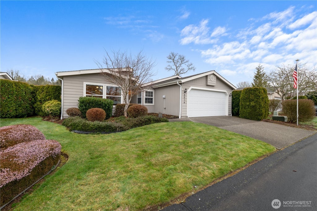 This wonderful home in a convenient pocket of Lacey offers affordability, security, comfort, & community. Located near the quiet back gate of Laurel Oaks, a desirable 55+ neighborhood, this tasteful 1-level is well suited for those seeking an affordable option near practical amenities. Well maintained 2006 manufactured home has open layout, bright kitchen, & storage o'plenty. All appliances included for a ready buyer. Great indoor-outdoor features: covered patio, garage access into utility room, & private landscaping, all in a peaceful setting. Option to entertain guests with big kitchen, extra surface area, & separate dining zone. Bonus room has french doors; primary suite stands out with its oversized bathroom. Delightful flow & features!