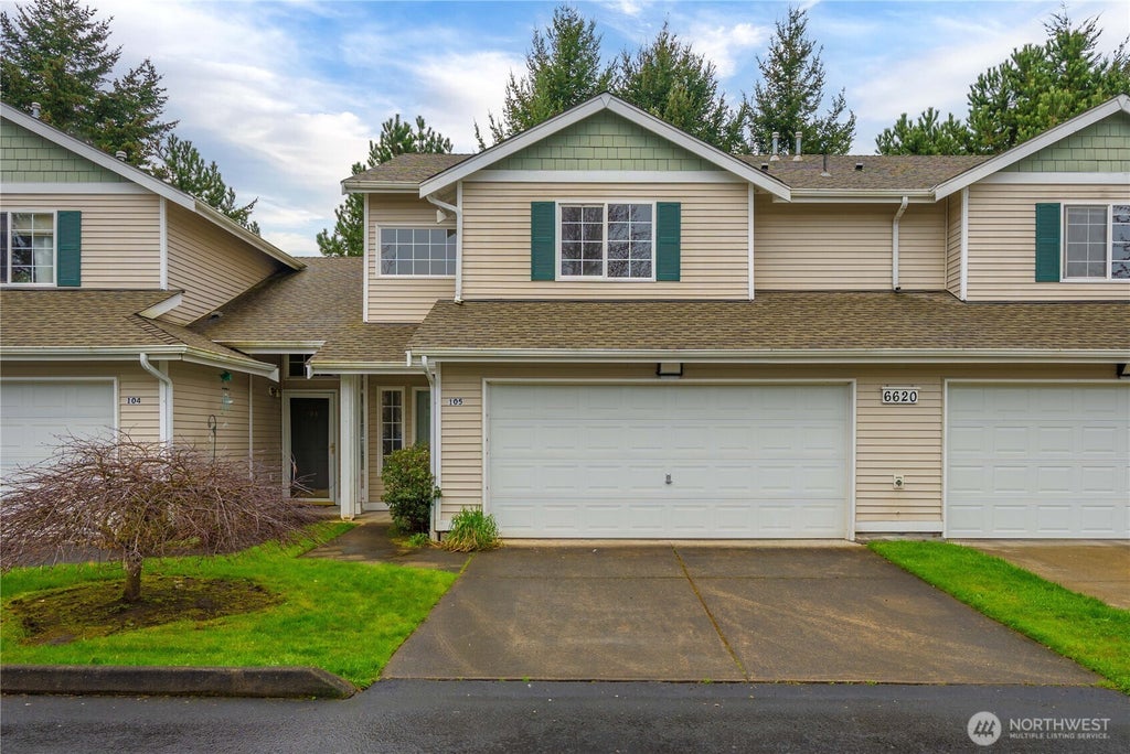 Ready for new owners, this gently used 2-story condo offers everything you are looking for! Three bedrooms, 2.25 baths, 1551 square feet with an inviting layout. Enter to soaring ceilings and a seemless flow from the living room into dining and kitchen. Gas fireplace will keep you cozy all winter! And AC will keep you cool in the summer! Slider to fully-fenced patio offers privacy and room to BBQ. Main floor half bath offers convenience, as does the garage access near the front door. Spacious primary suite located upstairs - complete with walk-in shower and walk-in closet. Two more bedrooms, a full bath, and laundry are also upstairs. 2-car attached garage has extra space for storage! Rainier Crossing is convenient to trails & amenities.