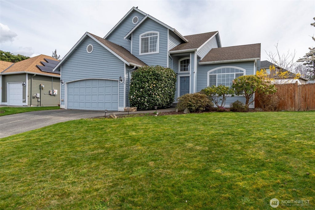 Lovely 2 story home located in a wonderful neighborhood close to parks, forest land hiking trails, schools & shopping! Light & bright floorplan with plenty of room for entertaining. Spacious kitchen with lots of storage, new stainless steel stove & microwave, pantry and breakfast bar. Family room with cozy gas fireplace and slider leading out to the back deck. Primary bedroom with ensuite bath & huge walk-in closet. Two additional guest bedrooms with partial water views of the Guemes Channel, Mount Baker & the islands. Huge backyard space to enjoy summer BBQ's too! Don't miss seeing this home!