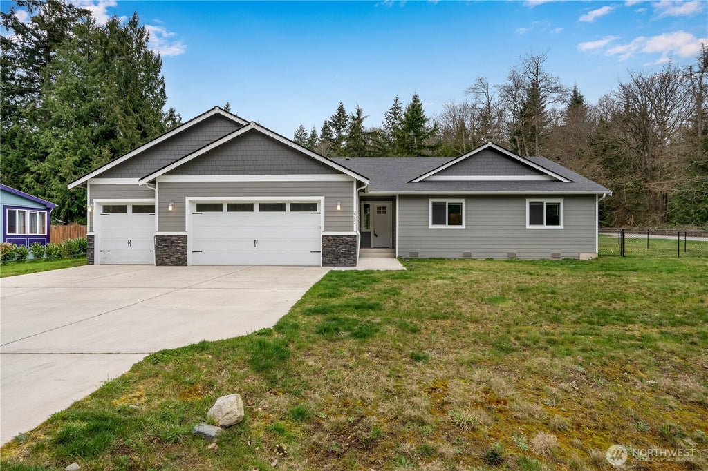 Check out this Beautiful 2022 Camano Island Rambler! This Home Features an Open Concept Living Room and Kitchen along with Large Dining Area, Vaulted Ceilings, and Cozy Fireplace. Kitchen Includes SS Appliances, Quartz Counters, Breakfast Bar, and Pantry. Covered Back Patio Leads to Level, Cleared Yard Ready for Your Personal Touch! Primary Suite Offers Luxurious Attached Bath and Walk In Closet. Two Guest Bedrooms, Full Guest Bathroom, Mudroom and 3 Car Garage Complete This Beautiful Home. Minutes from Golf, Parks, Boat Launch, Grocery, Beaches and More!