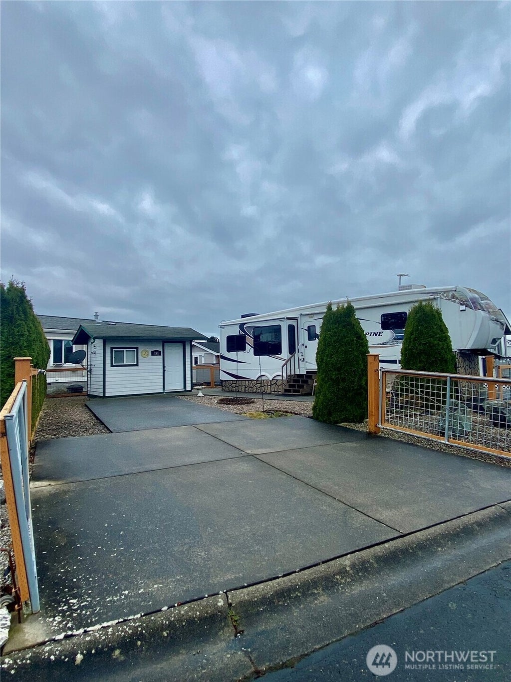 This is a 365 day Latitude 49 home site with deluxe 2010 Keystone Alpine. Dual gates, aggregate driveways, river rock, outbuilding, Gated community with pool, Jacuzzi, pickle ball, clubhouse and much more.