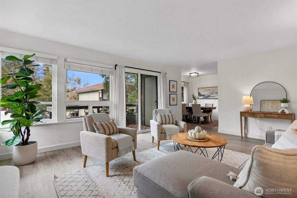 Welcome home to your beautifully updated 2 bedroom, 1 3/4 bathroom, top floor, end unit in the desirable Richmond Beach area! You will love the modern light and bright kitchen with stainless appliances, dedicated dining area and spacious living room that opens up to a nice sized outdoor deck with additional 3rd floor storage area. With only one shared wall, privacy abounds in this light filled unit. Pet friendly, TWO parking spots (one covered), community pool and no rental cap. Near shopping, dining, parks, fields, tennis & pickle ball courts, the beach and the light rail, the location is ideal for year round enjoyment.