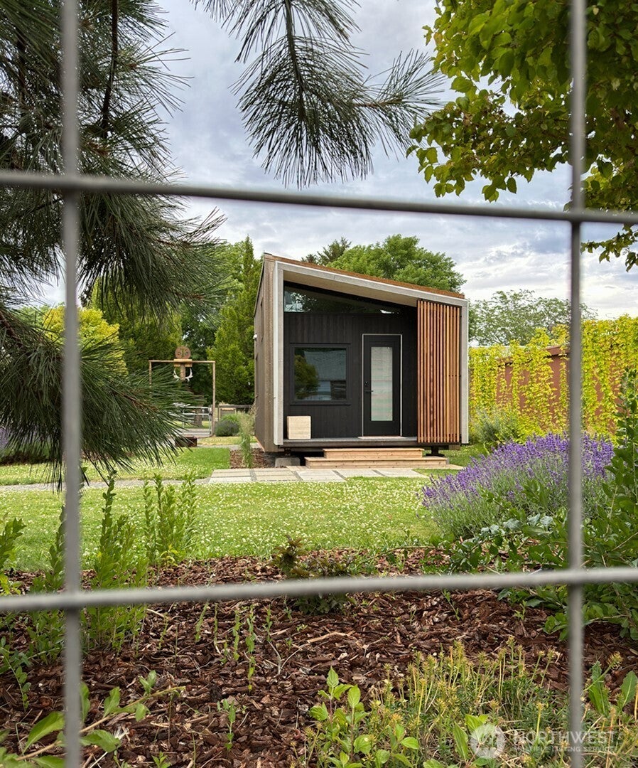 Located on the Tieton Town Square, this modern cabin is built with Cross Laminated Timbers (CLT) by Tieton Cabin Co in a controlled environment and delivered finished to the site and set on it's foundation in December '23. Low maintenance, durable corten steel siding and roofing is enhanced with weather and age. No paint, no drywall! Non-toxic, plant based hard wax oil finish applied to all interior wood. Soft, indirect lighting. Electronically controlled window shades. Loft accommodates 2 sleeping areas. Hanso covered patio too. Park like landscaping. So much potential now and in the future.