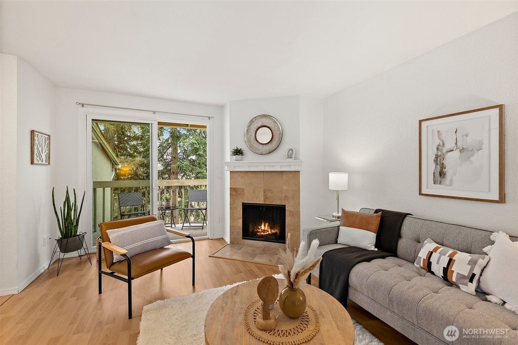 Welcome to this wonderful top floor 1 bedroom, 1 bath condo ideally located close to Redmond Town Center, Microsoft campus, Bella Bottega, library, restaurants, shopping, parks and freeway. Open floor plan with cozy wood-burning fireplace in living room adjacent to dining room. Updated kitchen with newer paint and fixtures. Full-size newer LG washer and dryer in unit. Large walk-in closet in bedroom. Private deck - perfect for entertaining and soak in the sun to relax. Great top floor unit in Excellent location! No rental cap!