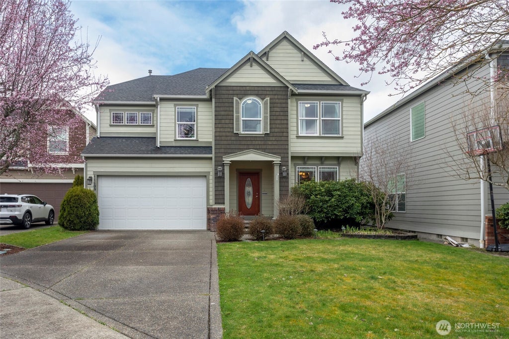 Sophisticated home in the vibrant Lipoma Firs community! Large windows fill the home with natural light & functional floorplan offers a main level bonus room + a .75 bath for versatile living. Formal dining area is perfect for hosting, complemented by a butler’s pantry for convenience. Kitchen & additional dining area opens to the living room with ample views of the yard & a cozy fireplace. Upstairs, enjoy enchanting Mount Rainier views from multiple rooms. Spacious primary suite boasts a private fireplace & 5 piece en suite. Four more bedrooms upstairs, a full bath & convenient upstairs laundry! Large fenced backyard is perfect for pets & summer BBQs! Community features a private park, playground & the New Expedition Elementary nearby.