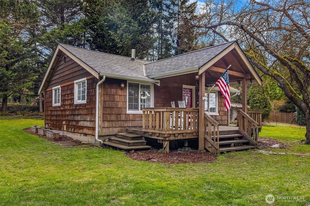 Adorable bungalow style home in booming Monroe. Come home to a private serene setting on nearly a half-acre with views of pasture lands and mountain views. Embrace the cozy vibe in the living room with the wood-burning stove and soft carpet. Kitchen has been updated, with newer cabinets, countertop, and appliances including a SMEG fridge, and newer LVP flooring. Lovely covered front porch. Magical half acre yard with a tree fort and goat pen. New shed. Newer Trex deck with beautiful views of pasture lands. Views of Mt. Pilchuck and partial Mt. Baker views from the west side of the property. Located close to parks and trails. Minutes from freeway access for commuting. Short drive to downtown Monroe & only 10 minutes from downtown Snohomish.