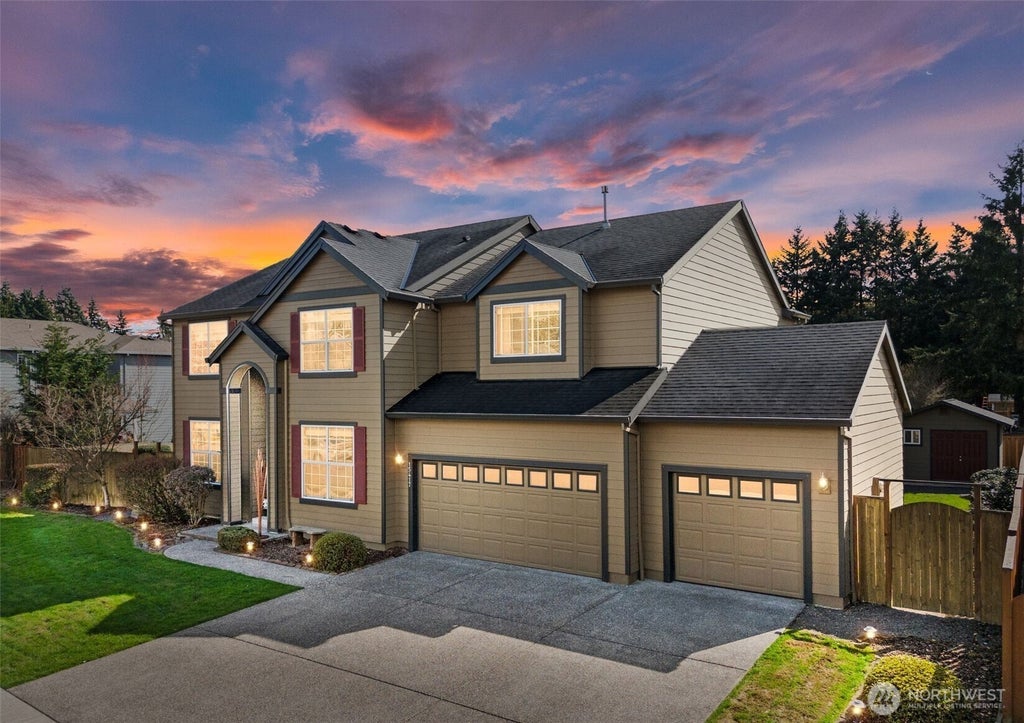 Meticulously maintained Misty Meadows Estates home offering 4 bedrooms, 2.5 baths in nearly 3,000 sf of living space on shy ¼ acre lot. 2-story, light-filled entrance flows thru formals & into family room anchored by gas fireplace; enjoy oversized kitchen w/ gas cooktop, granite counters, island w/ eating bar, walk-in pantry + generous butler's pantry. Step out breakfast nook to covered deck w/ built-in seating; flat, fully fenced South-facing yard bordering an orchard. Upstairs: primary bedroom suite features vaulted ceiling, walk-in custom closet & attached 5 pc bath w/ oversized soaking tub. 3 add't large bedrooms, full bath + small loft. 3-car garage offers tons of storage space! Don't miss the backyard shed. A/C!