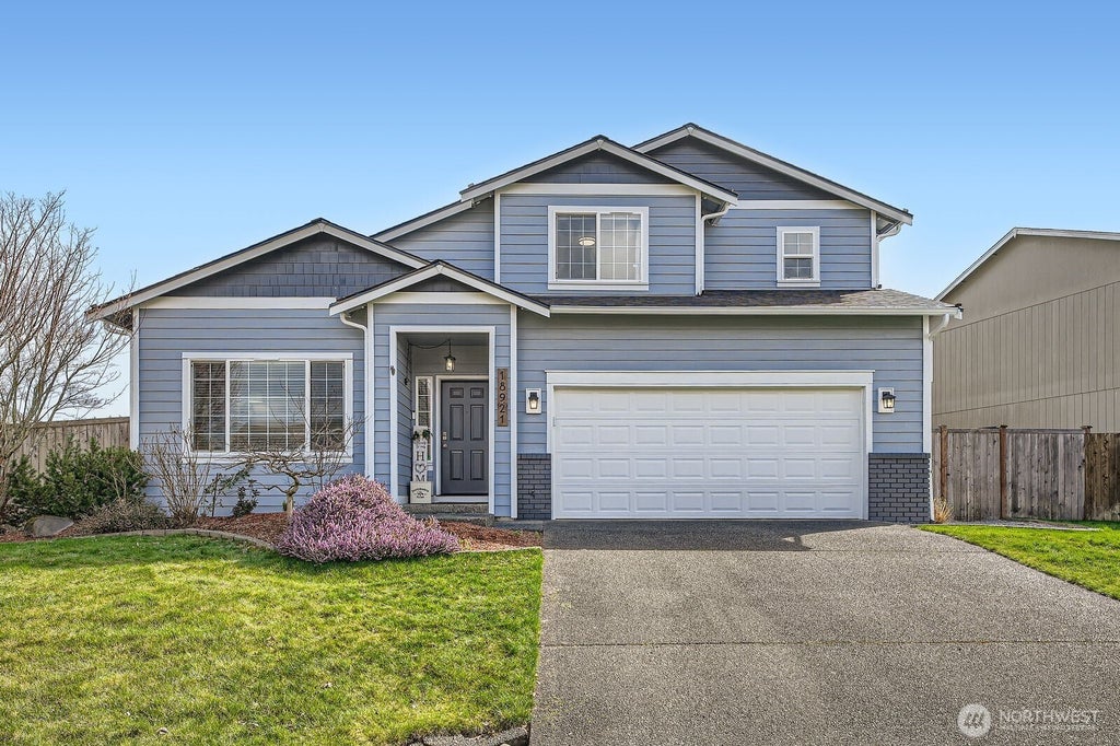 Well maintained home on a corner lot in the gated Hillsboro Community at Silver Creek. Versatile floorplan has a living room well situated for a variety of uses, main floor bedroom has French doors and could double as a den/office "work from home" space. The family room has a gas fireplace for cozy evenings in and soaring vaulted ceilings for a spacious feel. The adjoining kitchen has lots of counterspace, a planning desk/coffee station and a walk-in pantry. The primary suite has a full bath and walk-in closet. Fenced backyard has a party sized deck with a louvered cover for all season enjoyment of the outdoors. Central A/C keeps it cool in the summer. Several community parks and a clubhouse with tennis and basketball courts and more.