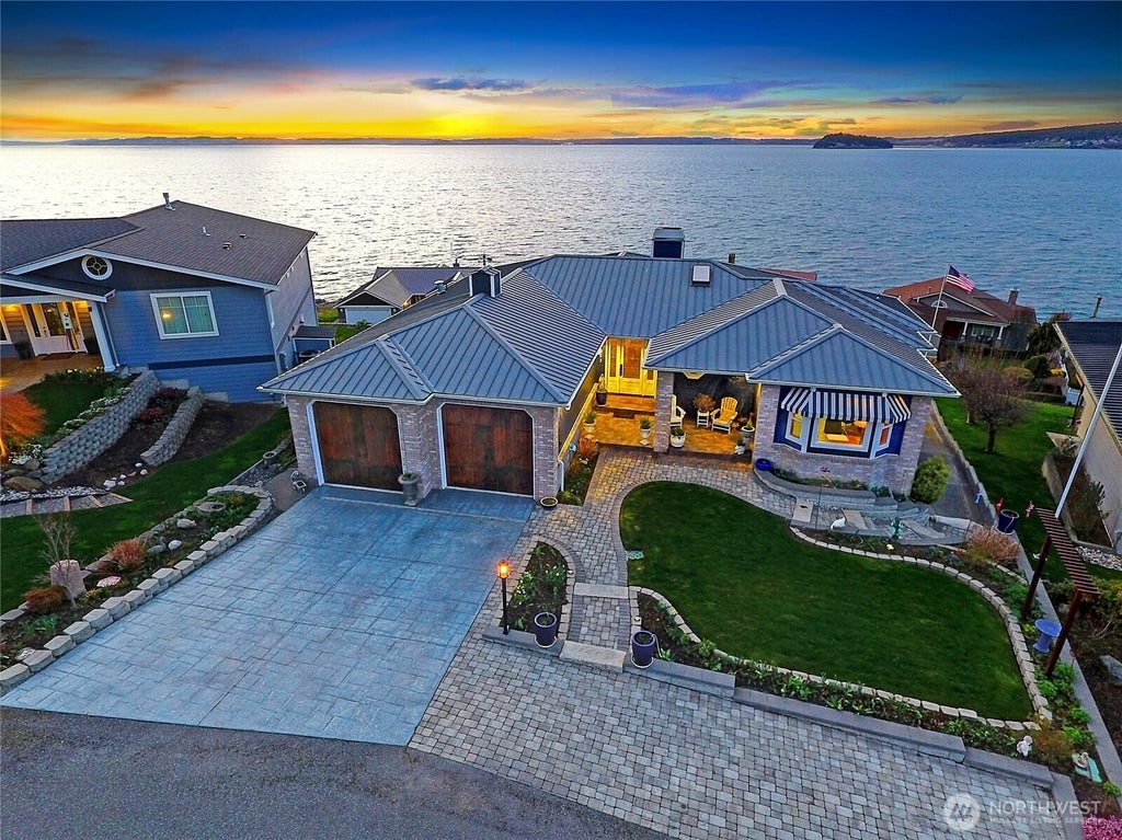 Perched on the hill overlooking the Saratoga Passage with one of the most expansive views on Camano Island. Many upgrades and immaculately maintained, for easy living. Main floor living with separate, fully finished basement. The lower level includes a full kitchen and outside access, encompassing magnificent westerly views. The kitchen has been completely updated, with high-end appliances a wet bar, and beautiful finishes. There are expansive views from every window and great space for entertaining. The outdoor fireplace room, closed in on two sides blocks the wind while enjoying the views of the Saratoga Passage, sunsets, boat traffic, and wildlife. Extensively landscaped, including sprinkler system. Private beach access and boat launch!