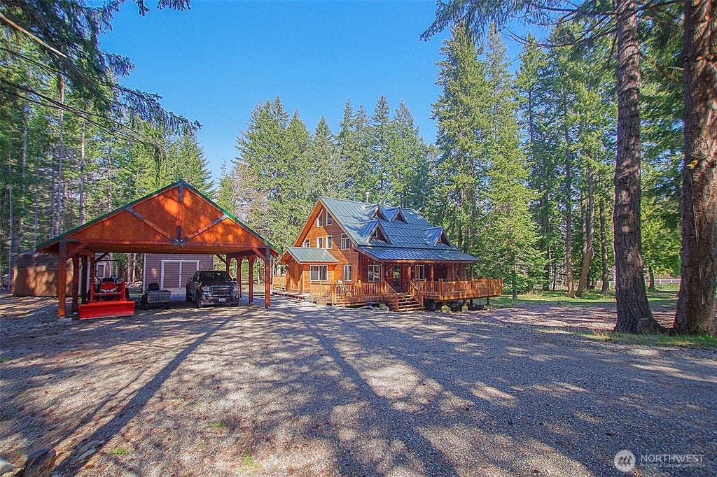 Rustic yet modern comforts in this "Cabin in the Woods". 4 beds, 3 bath home w additional huge sleeping loft. Kitchen has new cabinets, Quartz countertops and a Viking propane cook stove .2-Freestanding Propane stove (fire) and 2 Electric for cozy winter nights, and hot tub and sauna to relax and let all of your cares drift away. 3.82 acres and 280 ft of Big Creek waterfront is yours to enjoy, kick off your shoes and relax while soaking your feet on hot summer days. 2- outbuilding plus a 24x28 new carport. Great location for easy commute to the Westside when needed.