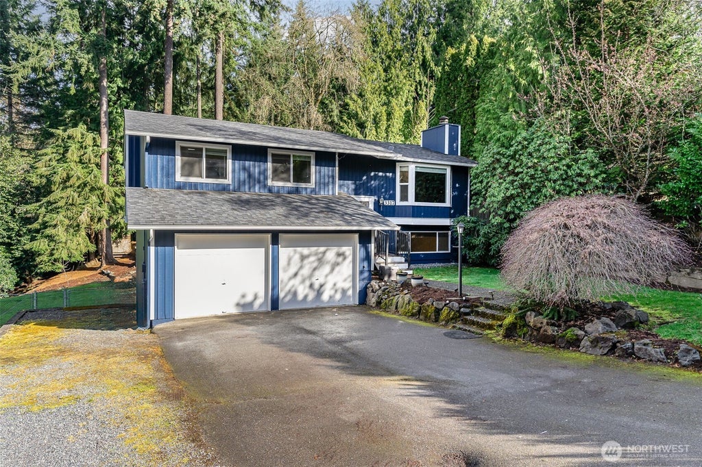 This serene Bothell retreat sits on a generous 11,761 Sq ft lot, offering a private sanctuary with lush landscaping, fruit trees, and a peaceful greenspace backdrop. Inside, enjoy a spacious great room, three bedrooms, an office/den, family room, and bonus room. Solar tubes bring in abundant natural light, enhancing the warm and inviting atmosphere. A separate downstairs kitchen adds versatility, perfect for multi-generational living or hosting guests. Unwind in the fenced backyard with a new deck, covered porch, and hot tub for year-round enjoyment. Recent updates include a pellet stove, fresh exterior paint 2023, and a 2017 roof upgrade with Leaf Guard gutters. This home blends comfort, convenience, and natural beauty in a prime location!
