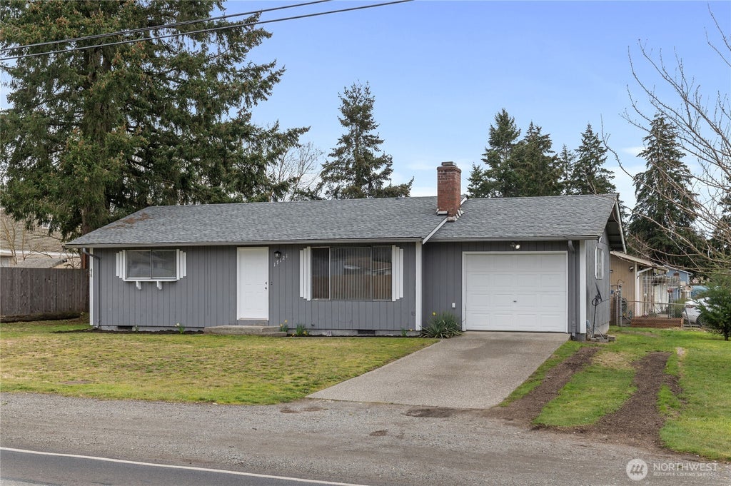Beautifully updated rambler on large 10,000 sq ft lot - zoned NCOR allowing many possible uses. Home boasts new kitchen cabinets, flooring, and paint in 2023. NEW roof 3-4 years ago. Electrical panel updated 5 years ago. Spacious kitchen w/ dining nook & slider to back patio. Welcoming family room w/ wood burning fireplace & beautiful hearth & mantel. Two generously sized bedrooms & full bath w/ tub/shower. The northern half of the property is fully fenced separate from home and could possibly be subdivided out for other uses - NCOR uses incl. residential, neighborhood/small scale commercial & services, civic, amusement & recreation. Confirm w/ county for details. Close to shopping, dining, schools and JBLM.
