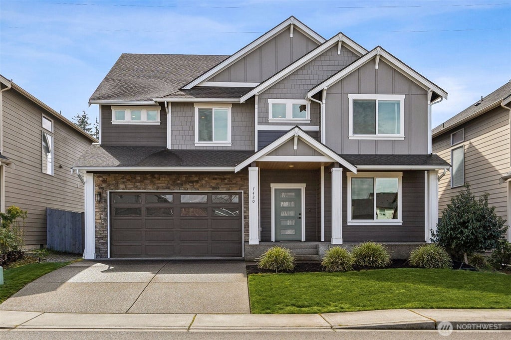 Exquisite home W/beautifully crafted interiors throughout! Entry W/elegant entry boasting chandelier & wainscoting! Office W/Farm Door. Convenient Main Level ½ bath W/sleek quartz counters. Mudroom W/Custom Built-Ins for added organization. Wood-Wrapped Windows on main. Gas FP W/ floor-to-ceiling ceramic tile accents. Chef’s kitchen W/high-end SS appliances- oversized side-by-side fridge/freezer, gas stove W/double oven, quartz counters, full-height tile backsplash, & custom pantry W/ butcher block counters. Primary retreat W/tray ceilings, French doors, & 5-Piece bath W/custom ceramic tile shower, soaker tub, & walk-in closet. Extended back covered patio W/BBQ hookup. Quiet Cul-de-sac, access to a community park & 3-car tandem garage!