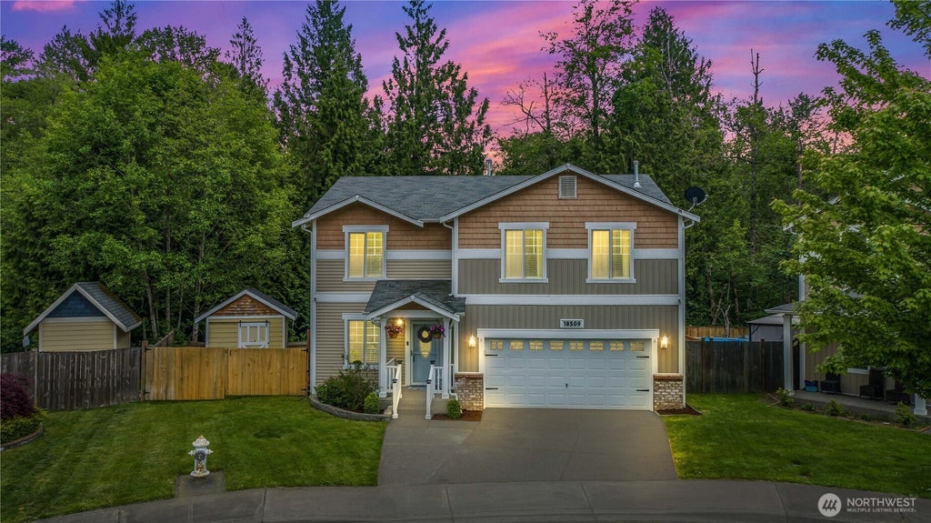 Exquisite, newly updated home in cul-de-sac! This home features 3 bedrooms, 2.5 baths, a versatile bonus room/loft + office space. New LVP hardwood floors, carpet, fresh paint, and more. Enjoy a modern open layout with a spacious primary suite and walk-in closet. 2 large bedrooms, 1 with a walk-in closet, plus an upstairs laundry room. Modern conveniences include central A/C, a generator plug-in, and an EV charging port. Fenced backyard backing up to a greenbelt for privacy. Close to amenities, top-rated schools, & HWY 410 for an easy commute. Enjoy nearby Lake Tapps and plentiful parks trails for recreation!