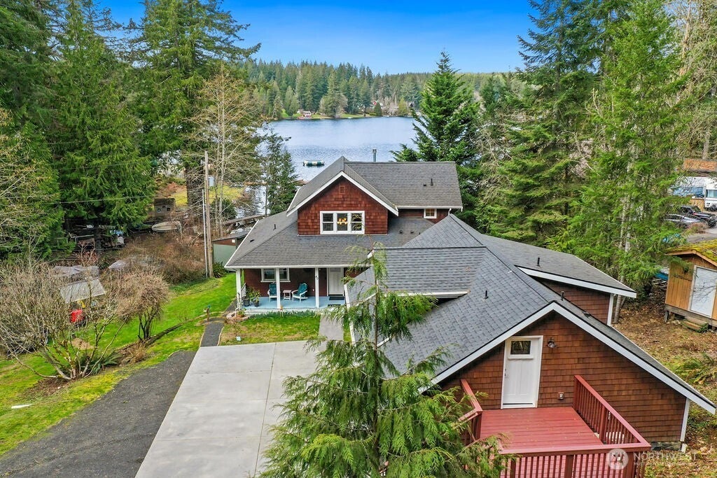 Stunning Craftsman home on Tiger Lake. Incredible lake views from every room. Park-like .72 acres, 2,472 sq ft, 3 bed/3 bath. Spacious 3-car garage built in 2019 & features a studio apartment above. Primary on the main, you could live comfortably on just the main level alone. Both the upper & lower levels of the home offer additional living space, complete with a bedroom & bathroom. The upscale kitchen is equipped with all newer stainless-steel appliances with dual-fuel Bosch range. It also features beautiful granite countertops & an island open to the dining & living rooms. French doors lead out to a covered deck where you can capture picturesque sunsets. Only 24 minutes from Bremerton & Seattle Ferry & 14 minutes to all Belfair amenities.