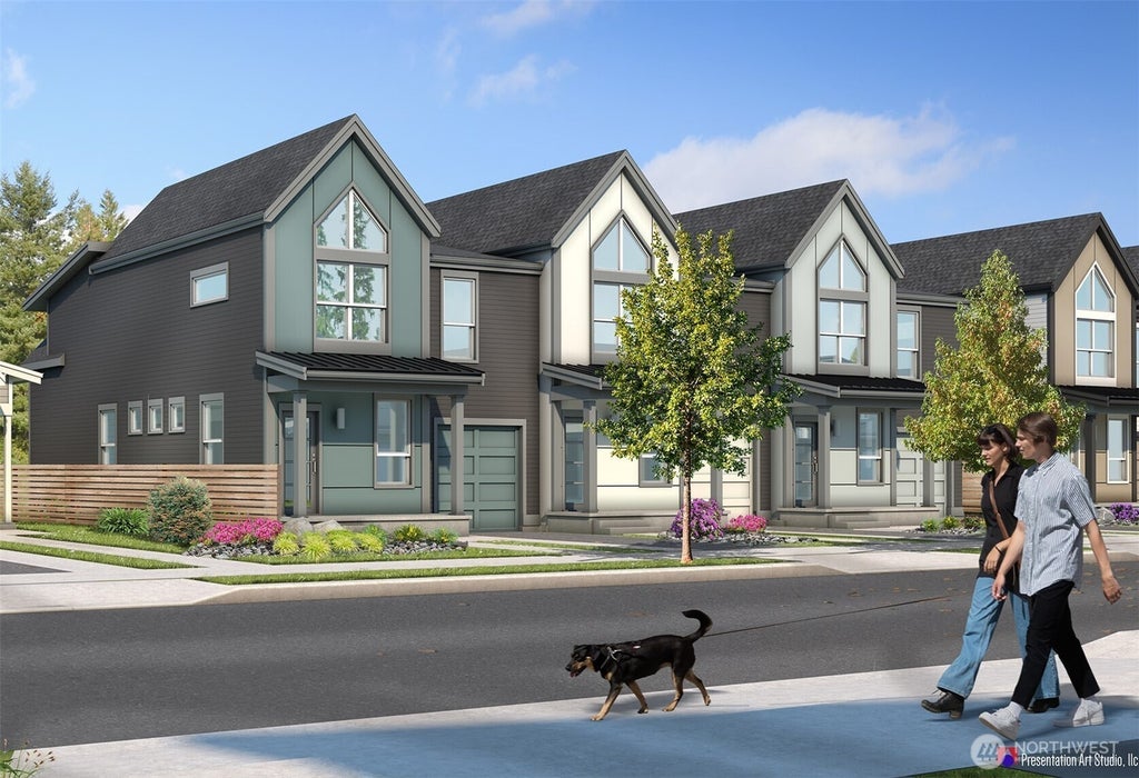 Welcome to Northview 2 in Cordata, Bellingham's premier solar home community! This stunning 2-story modern farmhouse design features an open and spacious floorplan, a custom kitchen with sleek quartz countertops, and a primary suite with an ensuite boasting a double sink and walk-in closet. Designed with sustainability in mind, enjoy efficient mini-split heat pumps with A/C, a partially fenced backyard, and EV charger prewiring. Light-filled interiors enhance the modern design. This beautiful 3-bedroom home backs up to a greenbelt for added privacy. Your dream home awaits—secure yours today!