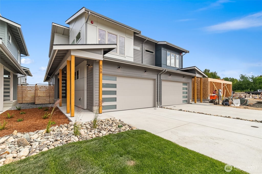Welcome to Northview 2 in Cordata, Bellingham's premier solar home community! This stunning 2-story contemporary home features an open and spacious floorplan, a custom kitchen with sleek quartz countertops, and a primary suite with a private ensuite boasting a double sink and walk-in closet. Enjoy two additional bedrooms plus a versatile den/office that can serve as a possible fourth bedroom. Built with sustainability in mind, it offers efficient mini-split heat pumps with A/C, a low-maintenance yard, a covered patio, and EV charger prewiring. Take in mountain and golf course views. Includes a 2-car garage. Your dream home awaits—secure yours today!
