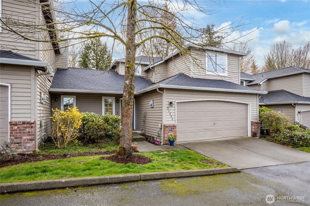 Welcome to the charming Country Chase Townhome community! Tucked away at the end of a cul de sac, backing to a peaceful wooded area, this home is a lovely retreat. Move-in ready with beautiful updates: fresh paint, new laminate flooring, remodeled bathrooms, newer appliances. High ceilings & gas fireplace in the living room. Several large windows provide abundant natural light. Generous kitchen includes double oven and access to the attached 2-car garage. The spacious primary suite has dual closets and a completely remodeled 3/4 bath. Laundry is conveniently located upstairs. Out back, you'll enjoy your private patio and forest backdrop. HOA maintains all exterior. Great location close to schools, parks, shopping & Green River College.