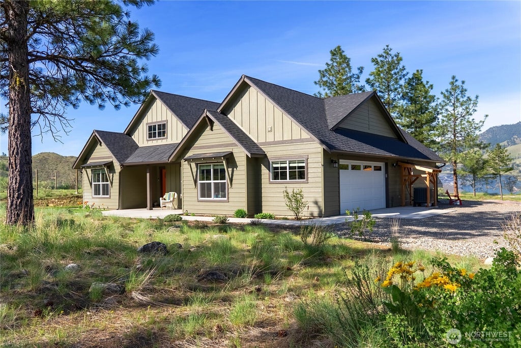 BENSON CREEK/Twisp South: Immaculate, move-in ready 1827sf, 3 bed/2 bath home on 20 lightly-treed acres. Private setting w/captivating views of the Sawtooths & North Cascades. Built in 2022, this home features open-concept living, luxury vinyl plank & tile floors throughout, private study/office, woodstove, walk-in pantry, quartz counters, top-tier SS appliances, farmhouse sink, covered back patio & attached 2-car garage. Primary bedroom w/walk-in closet & en suite, complete with soaking tub. Lots of windows provide plenty of natural light and breathtaking views from anywhere in the house. 40’ RV pad with hookups (50A), fenced garden area, low-maintenance yard & high-tech water filtration system already in place. Don’t miss out on this gem!