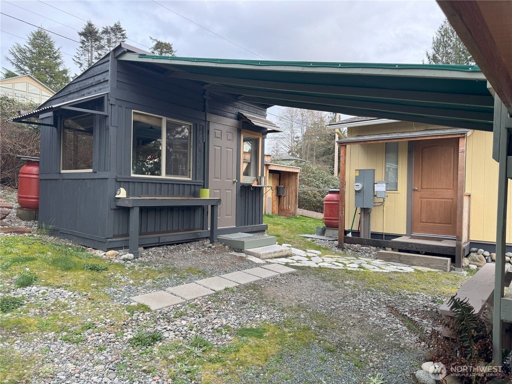 Unique opportunity in beautiful Admiral's Cove! Enjoy stunning sunsets and peek-a-boo views from the comfort of this private lot. Lot features a tiny home with a cozy fireplace, LVP flooring, and a roughed in shower. A second tiny home has a functional kitchen and there is also a small workshop, lovely greenhouse, and outdoor BBQ area. This is currently a recreational lot, perfect for weekend stays, with power and RV hook ups, and a rain catchment system. Bring your plans or leave it as is for your island getaway. Admiral's Cove features a community clubhouse, pool, beach, playground, and excellent fishing. Perc test needed.