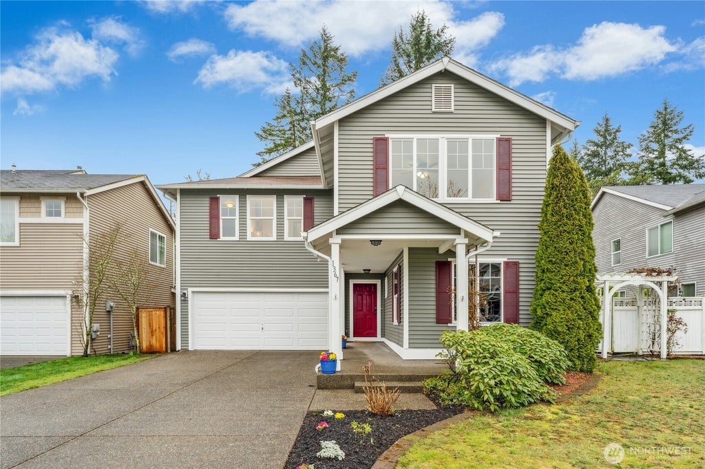 Welcome to Northwest Landing in DuPont, a well maintained and highly sought after neighborhood. This four bedroom home features natural gas, fireplace in the living room, stainless appliances, one bedroom (or den) on the main floor, family room off of the kitchen and a dining room with slider to the back yard (with patio and shed) that backs up to a private green space. The upper level has a primary with en-suite bath, two more bedrooms, another full bath, an extra large great room, and laundry room. There is a two car attached garage and ample parking in the driveway. Heat pump and A/C completes this home. There is a full house pre-inspection and a sewer scope report available.