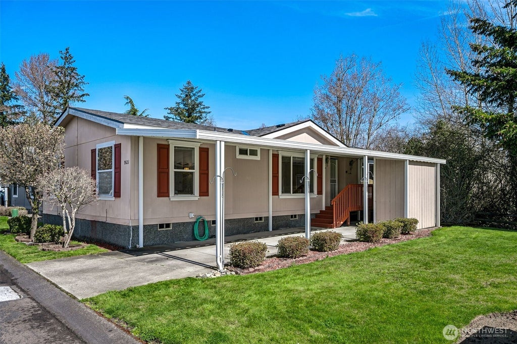 Well maintained rambler on corner lot in Chelsea Park. NO Age Restrictions. NO Space Rent you own the home and land!! This 1508 Sq. Ft. Home features 3 bedrooms, 2 full bathrooms, plus a den/office (possible 4th Bedroom). Good size kitchen with breakfast nook and pantry. The kitchen opens up to the living and dining room. Enjoy the privacy of the split-bedroom floorplan. The Primary bedroom features a 3-piece bath and large closet. Large utility room with ample storage. The home sits next to wonderful relaxing park. Enjoy the comfort and peace of mind in having a New Roof!! Partial fenced low maintenance yard which the HOA takes care of year round. Covered car port with shed. Close to all amenities and Hwy. Welcome Home!
