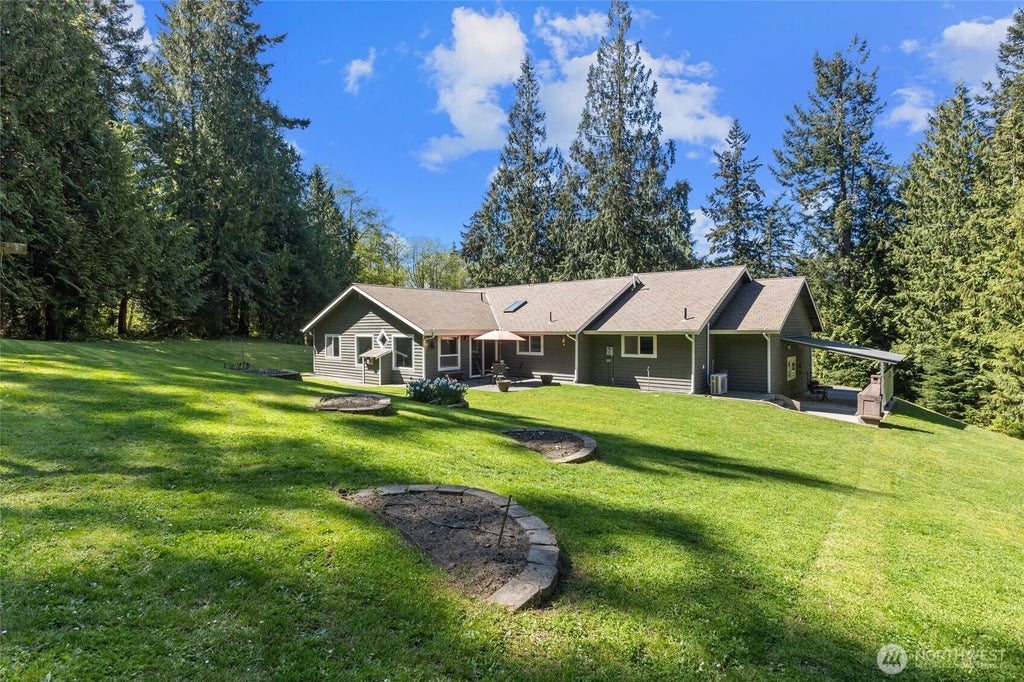 Experience serenity and privacy, where 27 acres of lush woodland offer a secluded retreat on the desirable north end of Camano Island. This custom-built home features single level living with an open floor plan, combining quality with functionality. The updated kitchen opens up to both the dining and living areas, creating a perfect for both relaxing and entertaining. Step outside to the private outdoor spaces, with room for gardening, animals and extensive walking trails. Additional features include a spacious workshop with covered parking and versatile bonus space above, ideal for hobbies and storage. This home also presents investment opportunities such as potential subdivision and timber harvesting, appealing to discerning buyers.