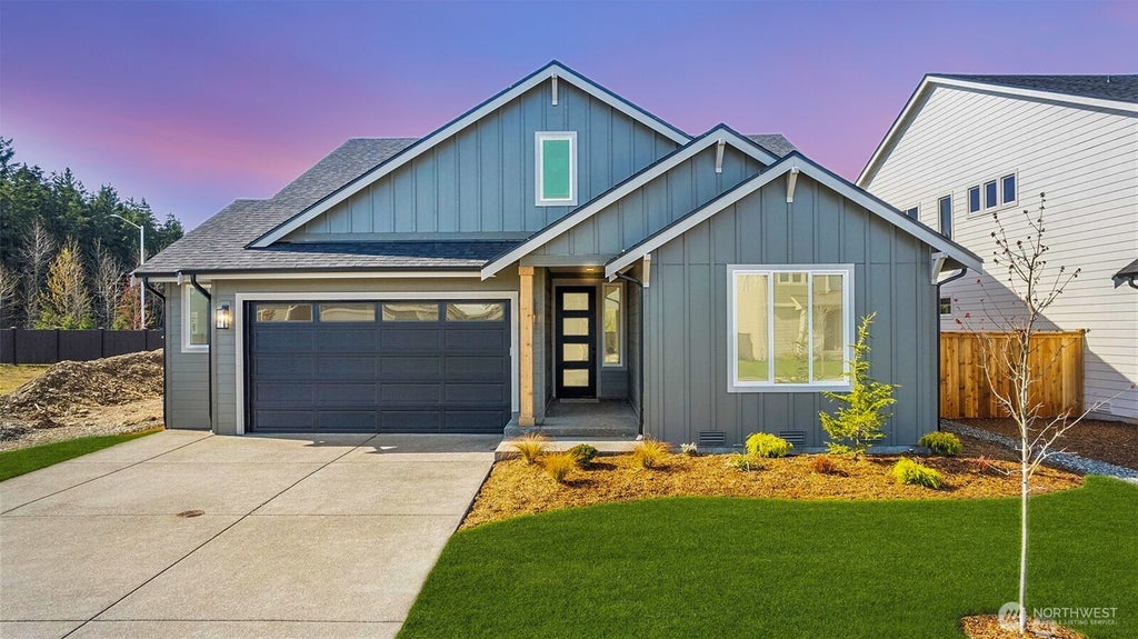 Mt Rainier view from Madronas at Sunrise by High Country Homes. Open floor plan w/9' ceilings, iron rod railing & high end accents. Kitchen features SS appliances including 5 burner gas range & fridge. Bev bar w/ free floating wood shelves, tile backsplash. Dining area has slider to covered patio overlooking fully fenced and landscaped yard. Great room w/gas FP & custom mantel. Primary has luxurious 5pc ensuite w/freestanding soak tub, walk-in closet. 2 additional bedroom/s or den, full bath & laundry room. Upper level bonus room, 4th bedroom & full bath. Luxury features include professional landscaping, recessed lighting, painted millwork & Heat Pump/AC. 2 Car garage pre wired for EV. Community has sidewalks, close to parks & schools.