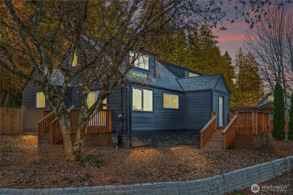 Discover the perfect blend of charm & modern updates in this beautifully restored Craftsman on a serene, shy acre lot in Kitsap Lake. Nearly everything is new inside and out! The airy living space is bathed in natural light, leading to a meticulously renovated kitchen with shaker cabinets, tiled backsplash, new appliances, and striking stainless steel hood. A stylishly updated bathroom sits between the oversized bonus room and spacious primary. Upstairs, vaulted ceilings elevate two large bedrooms with peekaboo lake views. The 4-car detached garage offers 866 sq. ft. of finished bonus space—ideal for an ADU, office, or rec room—plus RV parking. Enjoy a fully fenced, wooded yard with multiple decks. Minutes to Kitsap Lake, Hwy 3 & navy base!