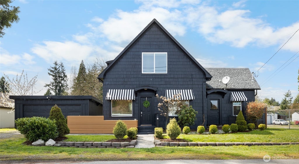 This adorable, completely updated home sits on a large, private lot & is the perfect blend of old and new. High ceilings, coved entryways, tons of natural light w/brand new flooring, updated electrical, plumbing & windows & fresh paint making it sparkly & move-in ready. The main floor features a spacious bedroom & bath, an open concept living & dining room, kitchen w/walk-in pantry, stainless appliances & a door to the back deck & huge, fully fenced yard. 2 more spacious bedrooms upstairs including the primary w/walk-in closet & view of Mt. Rainier & another full bath. Double-car garage & RV Parking. Minutes to shopping, restaurants, parks & schools. Centrally located between freeways w/easy access to everything. 20 minutes to JBLM