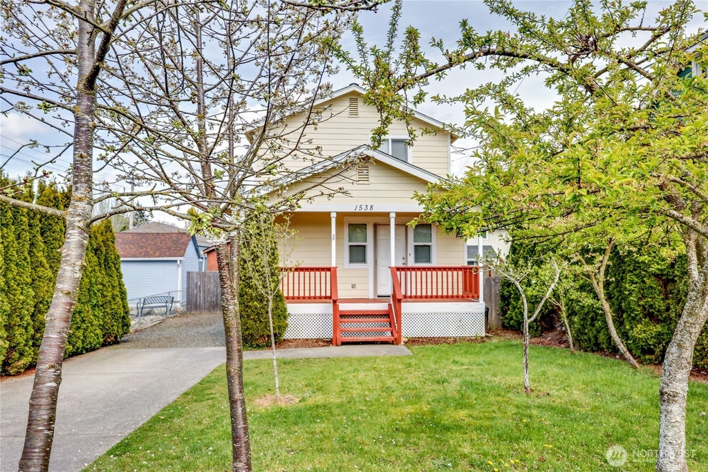 Charming downtown Bremerton home! This 2-bed, 1.5-bath gem offers 1,120 sqft of comfortable living near PSNS, the ferry, and vibrant shopping & dining. Built in 2008, it features a spacious kitchen, convenient main-floor laundry, and an inviting covered front porch. The upstairs has 2 bedrooms, and a full bath with dual sinks. The fully fenced backyard includes a deck, patio, and mature landscaping is lovely in front and backyards! Driveway parking adds convenience, and commuting is a breeze. Don’t miss this opportunity for modern living in a prime location!