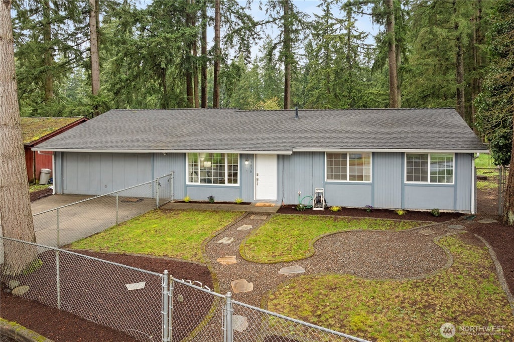 Nestled in the desirable Timberlane community, this inviting rambler blends comfort, style, and convenience. Fully fenced front and back yards, framed by towering evergreens, offer plenty of space for gardening, play, or unwinding on the spacious patio. Inside, fresh updates include new flooring, lighting and fixtures. The family room, with its cozy electric fireplace and beadboard ceiling, creates a welcoming gathering space that flows seamlessly outdoors. Both bathrooms have been refreshed with modern finishes, while a newer roof provides added peace of mind. Just steps from the clubhouse, playground, basketball court, and swimming pool. Ideally located between Covington and Maple Valley, with easy access to shopping, dining, and schools.