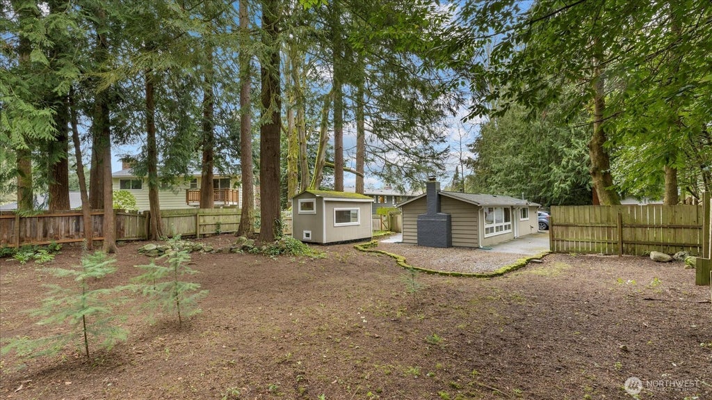Looking for privacy & seclusion in city? Close to Sound Transit new portal @ 185th, & close to every convenience! Hoping to have extra yard space, even possibilities for a DADU? This quiet retreat awaits your immediate viewing. It sits perfectly on large flag lot behind the frontage houses on Ashworth Ave N, down a private road which creates the setting of your dreams. Two large bedrooms both w/ very large closet space, a large bathroom / utility room, & beautiful kitchen that opens to a sun filled living room w/ wood burning fireplace & sliders to a private patio. Two large storage sheds, one with electricity. Large rear yard is 66 X 59 (DADU?) add garage on side yard. (some photos Virtually Staged) HUGE Price drop! Offers Ok