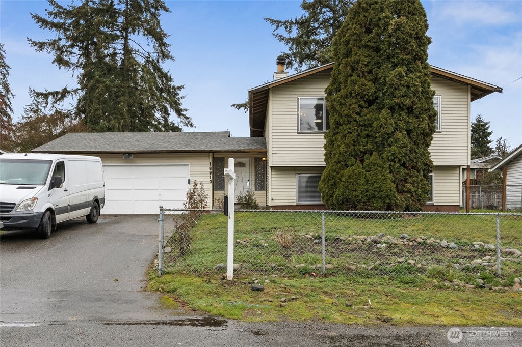 Tastefully updated with quality materials and a like-new interior, this spacious home features all new vinyl plank flooring and carpet throughout, as well as new millwork, doors, lighting, and interior paint. The well-designed floor plan offers a generous-sized kitchen with butcher block counters, an eating area, and a slider to the deck. The living room has a cozy fireplace! The primary bedroom includes a walk-in closet, and a continental bath also accessed from the hallway. There are two bedrooms upstairs, an additional bedroom downstairs, a finished room, a laundry room, and a spacious family room. The home also boasts a spacious 2-car attached garage and a fenced backyard. Conveniently located close to JBLM, Fredrickson, and shopping.