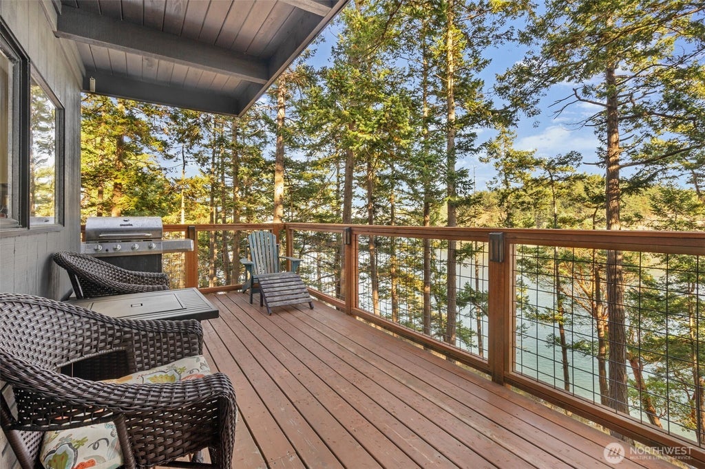 Escape to your own waterfront retreat in the stunning San Juan Islands! This furnished, turnkey home sleeps 7 with 3 private sleeping areas, a full bathroom and cozy bunk space. With Center Island's community airfield, 2 deep-water docks, and quick boating access to neighboring islands, adventure awaits! Nestled among madrona trees on a low-maintenance ½-acre lot, enjoy 111’ of waterfront with a private staircase to the beach. Open-concept layout with large windows fills the home with natural light and spectacular water views. With a large deck, new BBQ, wood stove, updated appliances, and a durable metal roof adds convenience and comfort. Nearby clubhouse offers a kitchen, showers, laundry, internet, sports court, deep water docks & beach.