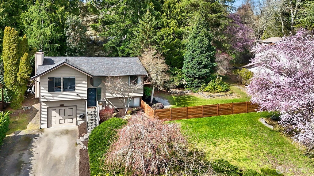 Nestled on a quiet dead-end street in desirable Illahee, this beautiful home sits on a spacious 9,148 sq. ft. lot with territorial views facing Bainbridge Island. Featuring 3 bedrooms + office (two rooms on each level). This home boasts flowing hardwood floors, an updated kitchen with quartz countertops & stainless steel appliances, and two full bathrooms (one on each level). All appliances stay; including full size washer and dryer. Large windows and sliding glass doors fill the home with natural light, leading to an expansive backyard deck that spans the full length of the house—perfect for entertaining! A generous side yard adds even more outdoor space. Tucked away in a quiet neighborhood yet close to amenities, this home is a must-see!