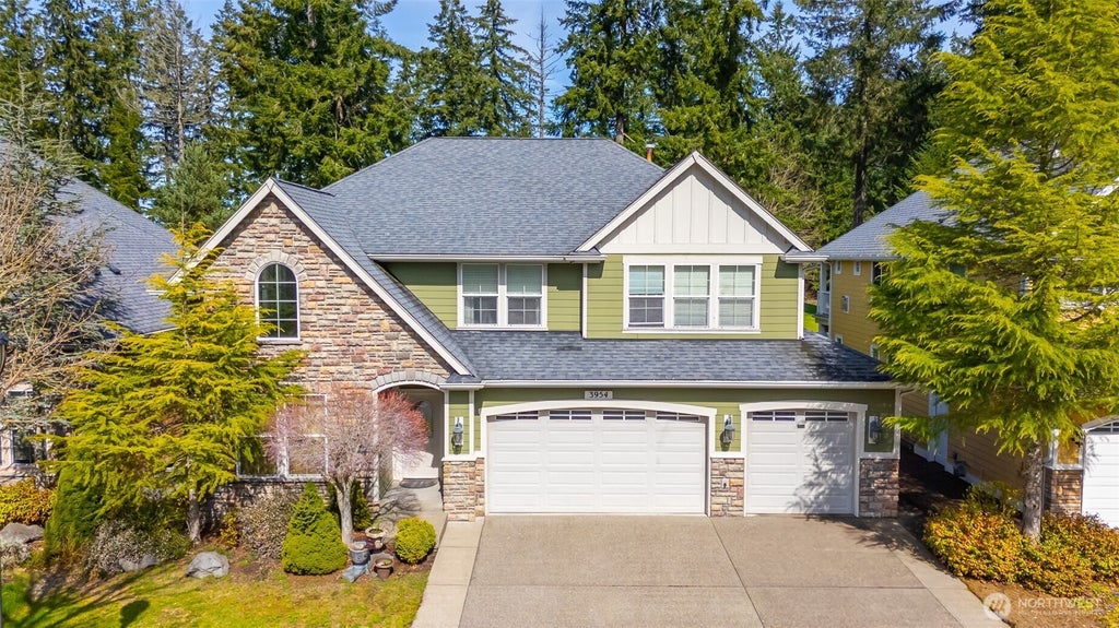 This stunning 4-bedroom, 2.5-bath home in Campus Highlands sits right along the edge of Hawks Prairie Golf Course, offering panoramic fairway views and 3,408 sq ft of beautifully designed living space. The bright, open layout showcases expansive windows, a cozy gas fireplace in the living room, and a spacious kitchen complete with a gas stove. The primary suite is a true retreat—featuring its own fireplace and private balcony overlooking the course. With a versatile bonus room upstairs, a dedicated office on the main level, and a location just minutes from shopping, dining, and everyday essentials, this home offers the perfect blend of luxury and convenience.
