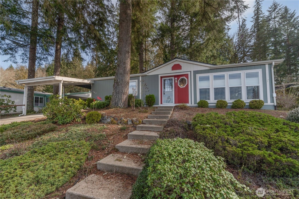 Enjoy Premier Senior Living at Silver Creek Meadows! Serene setting overlooking the community. Light filled, open floor plan with updated windows, new carpet and laminate flooring. The kitchen features newer appliances, skylight and breakfast bar. New roof, gutter guards and furnace. Bathroom with newer walk-in shower with seat. Private back yard with patio under the trees and covered patio for year round enjoyment. Access to walking trail. 2 sheds. 55+ community w/clubhouse, golf course, horseshoes, walking trails. Close to shopping and hospital.