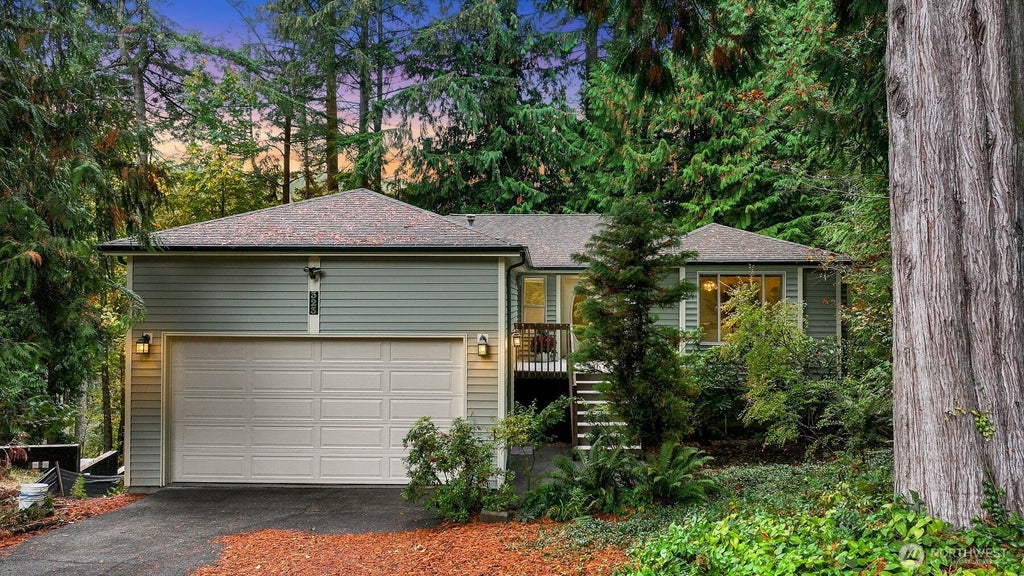 Discover your perfect home! Minutes to walking trails, Lake Louise and Lake Whatcom. This beautifully maintained home featuring a brand new roof offers incredible versatility. The main level includes a flexible home office, den, or bonus room, along with two bathrooms. The primary bedroom has access to a large private deck and primary bath. The expansive lower level boasts a rec room, a second cozy fireplace, a third bedroom, and a full bath with its own private deck. Enjoy nature views and privacy from two back decks, creating the perfect outdoor retreat. Lots of space including two large storage rooms connected to the crawlspace. Lower level also boasts a spacious laundry room with shelving. This is an opportunity you won’t want to miss!